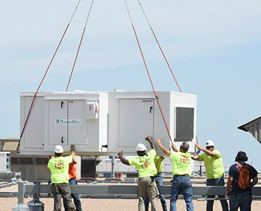 RapidHeli services in Los Angeles use helicopters as the standard practice for HVAC transport and installation. Helicopter lifts provide an easier, safer, less manpower intensive solution to HVAC unit placement. RapidHeli projects use helicopters to complete commercial HVAC unit installations in a few hours, where a ground crane would have taken substantially longer.